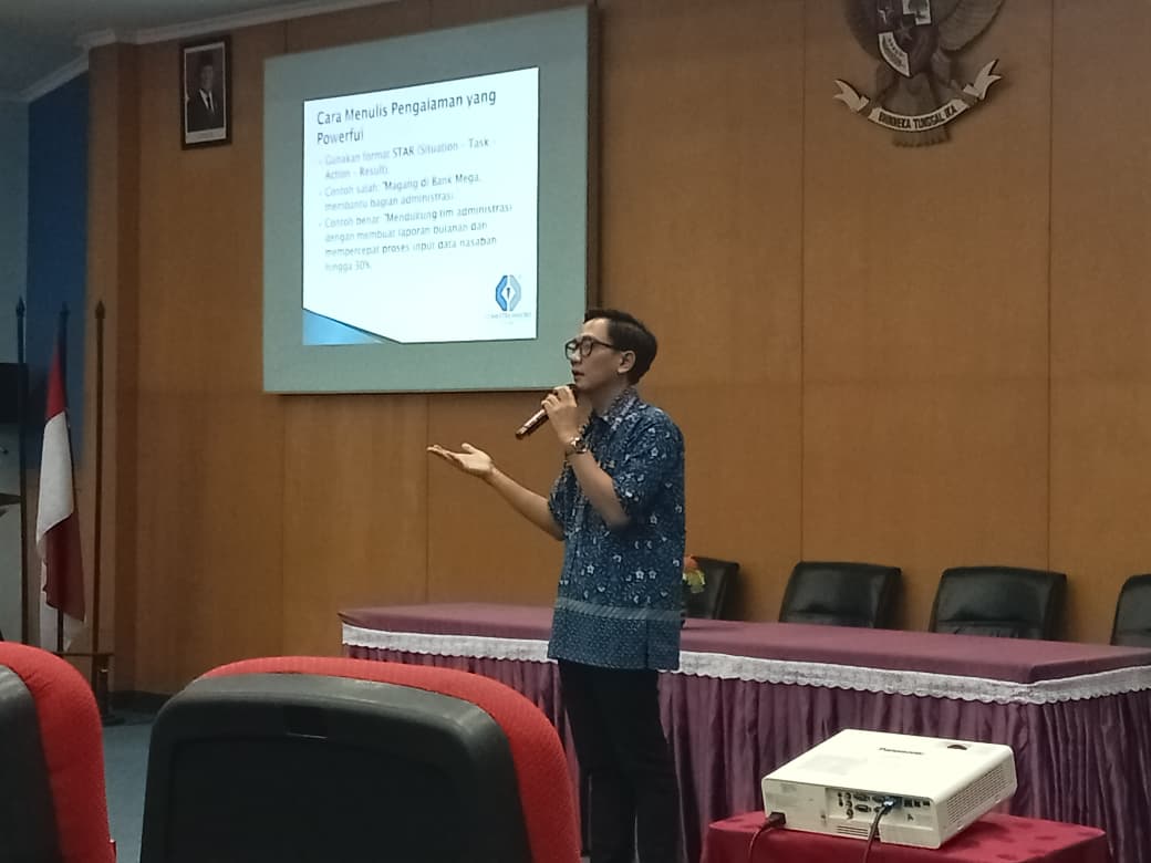 Kegiatan ini bertujuan memberi pemahaman kepada peserta mengenai cara membuat Curriculum Vitae (CV) yang tidak hanya menarik perhatian perekrut, tetapi juga relevan dengan kebutuhan industri. Kesesuaian antara kapasitas dan pengalaman pelamar dengan bidang yang dituju menjadi faktor penting yang meningkatkan peluang diterima kerja.