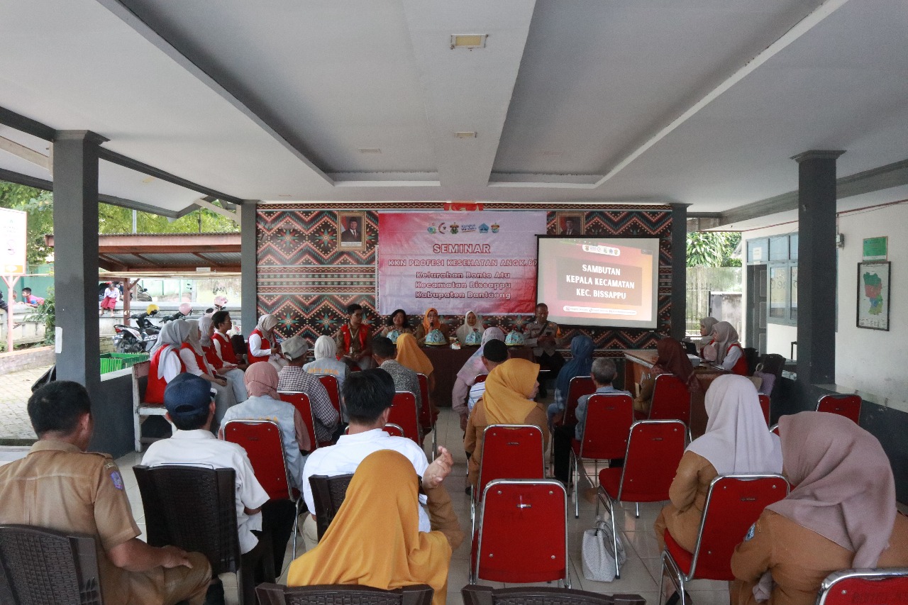 Mahasiswa Kuliah Kerja Nyata (KKN) Profesi Kesehatan Angkatan 67 Kelurahan Bonto Atu adakan seminar program kerja (proker). Kegiatan tersebut dilaksanakan di Kantor Lurah Bonto Atu, Kabupaten Bantaeng, Senin (14/07)