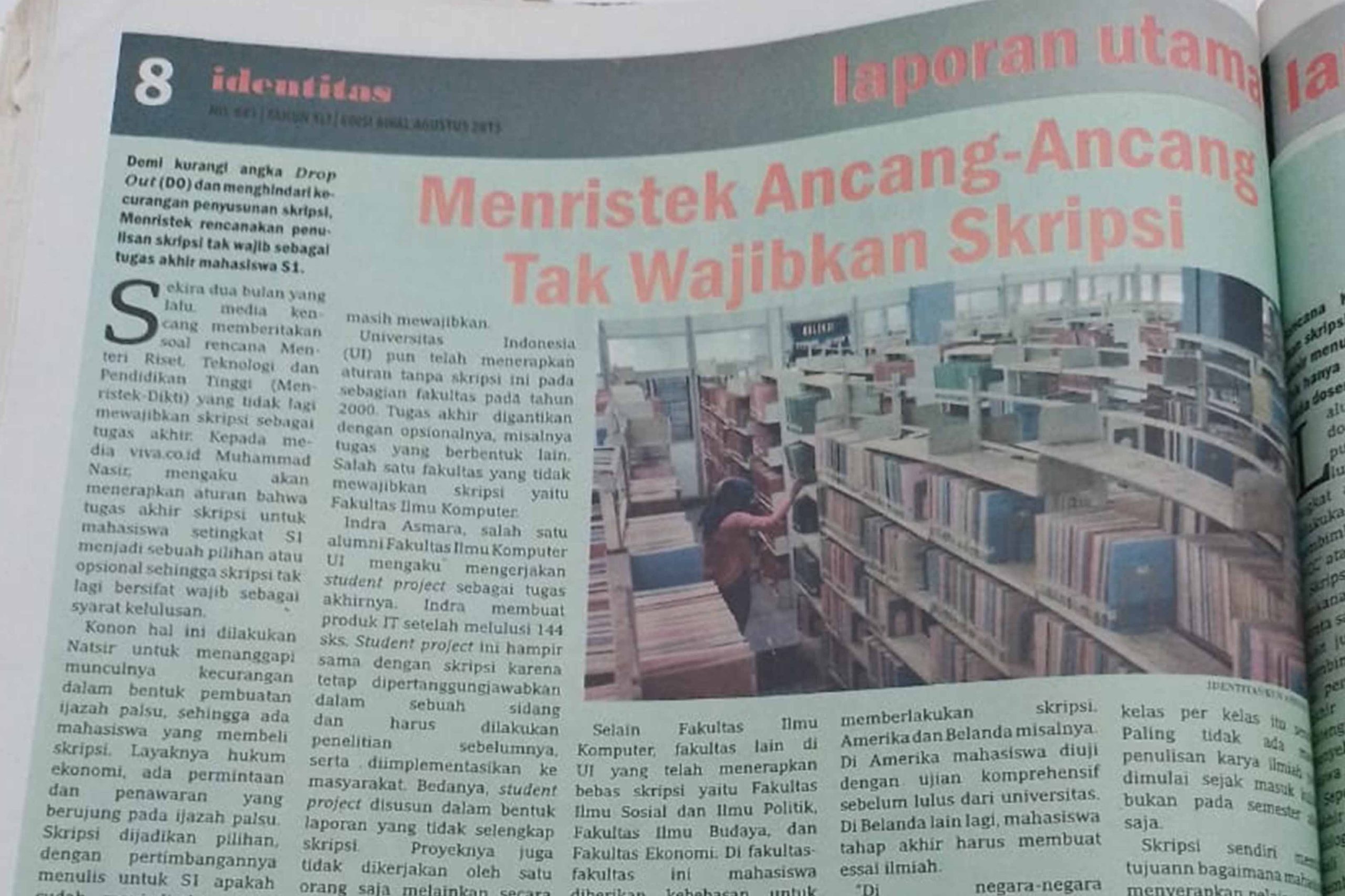 Senada dengan itu, Wakil Dekan bagian Akademik Fakultas Matematika dan Pengetahuan Alam pada saat itu Dr Eng Amiruddin MSi turut menanggapi hal tersebut. “Bisa saja (tanpa skripsi, red), dengan catatan mahasiswa tetap melakukan penelitian. Tetap namanya tugas akhir tetapi bukan skripsi contohnya mahasiswa membuat artikel yang sudah siap dipublikasikan,” lugasnya.