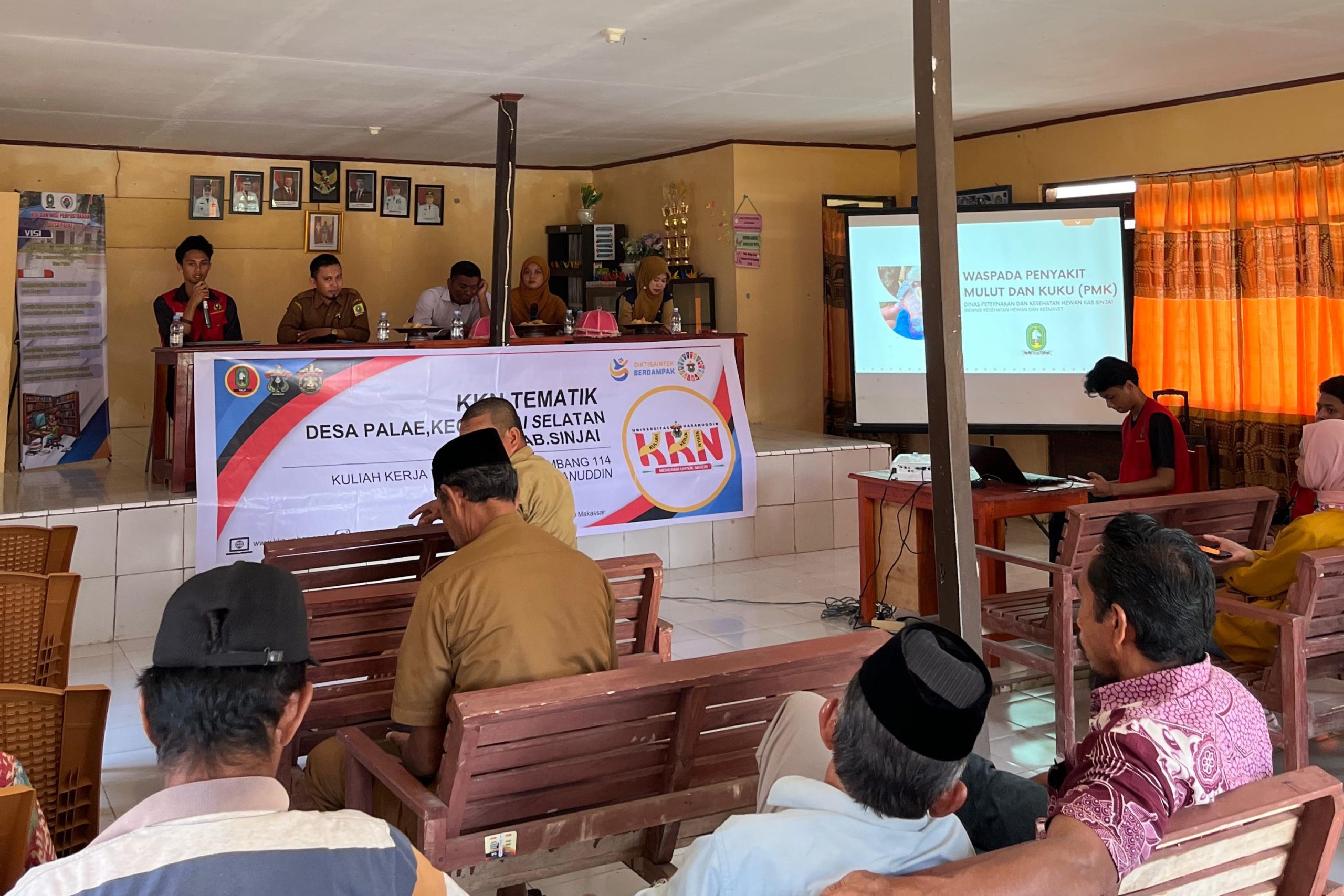 Mahasiswa Kuliah Kerja Nyata Tematik (KKN-T) Literasi Gelombang 114 Universitas Hasanuddin (Unhas) melaksanakan sosialisasi bertajuk “Wabah penyakit mulut dan kuku (PMK) sebagai langkah preventif dalam pengendalian penyakit menular pada ternak”. Kegiatan bertempat di Gedung Pemberdayaan dan Kesejahteraan Keluarga (PKK) Desa Palae, Kecamatan Sinjai Selatan, Kabupaten Sinjai, Selasa (29/07).