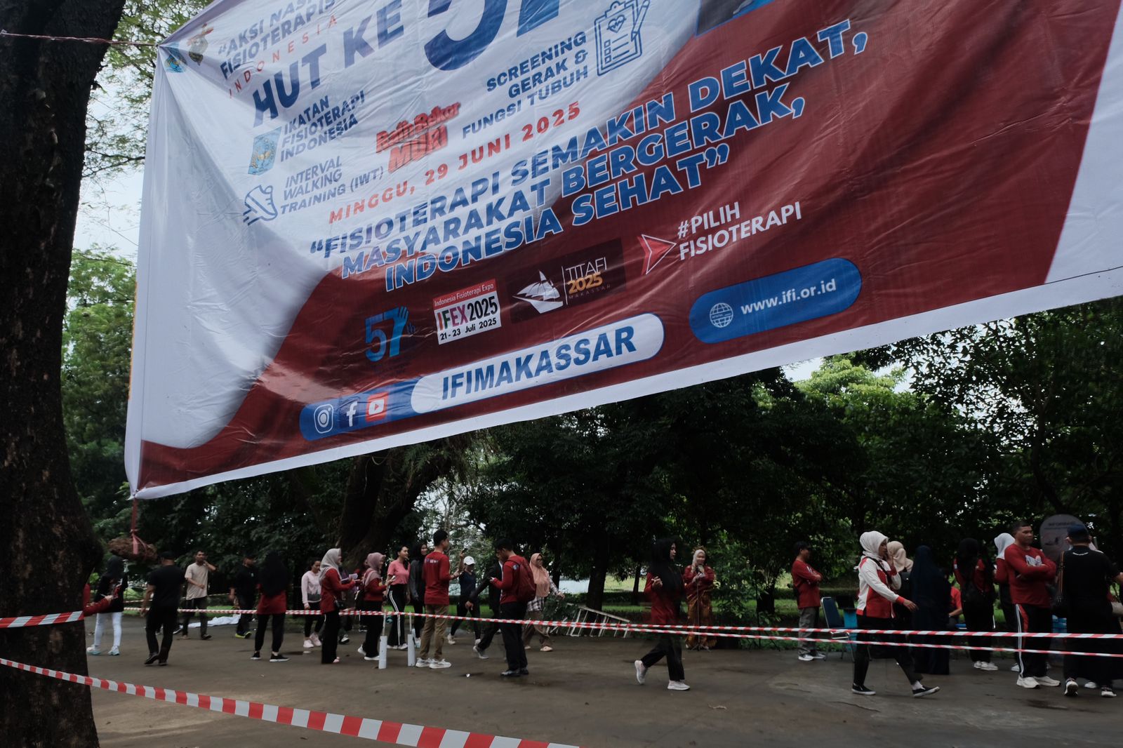 Ikatan Fisioterapi Indonesia (IFI) Cabang Makassar mengadakan Interval Walking Training dalam rangka Hari Ulang Tahun (HUT) IFI Ke-57 yang berlangsung di area Car Free Day (CFD) Universitas Hasanuddin (Unhas), Minggu (29/06).