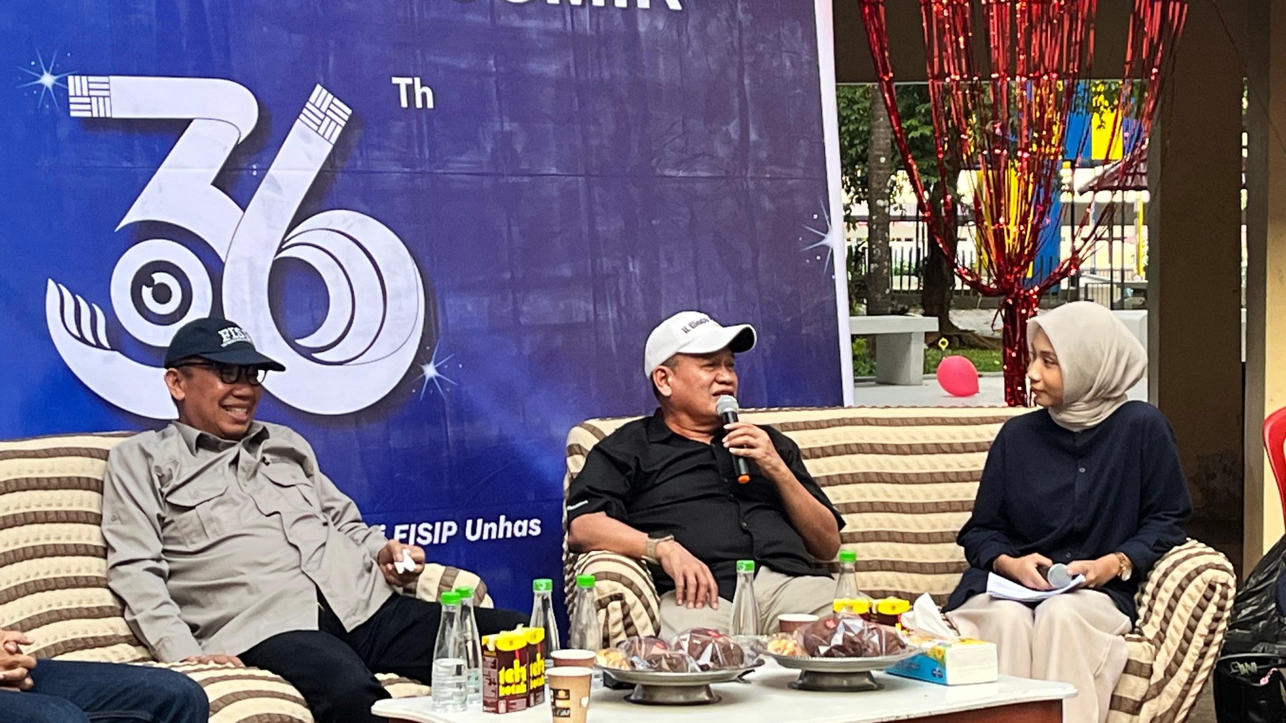 Rayakan Ulang Tahun yang ke-36, Korps Mahasiswa Ilmu Komunikasi (Kosmik) Fakultas Ilmu Sosial dan Ilmu Politik (FISIP) Universitas Hasanuddin (Unhas) mengadakan Talkshow di depan FIS. 109 FISIP Unhas, Sabtu (19/07).