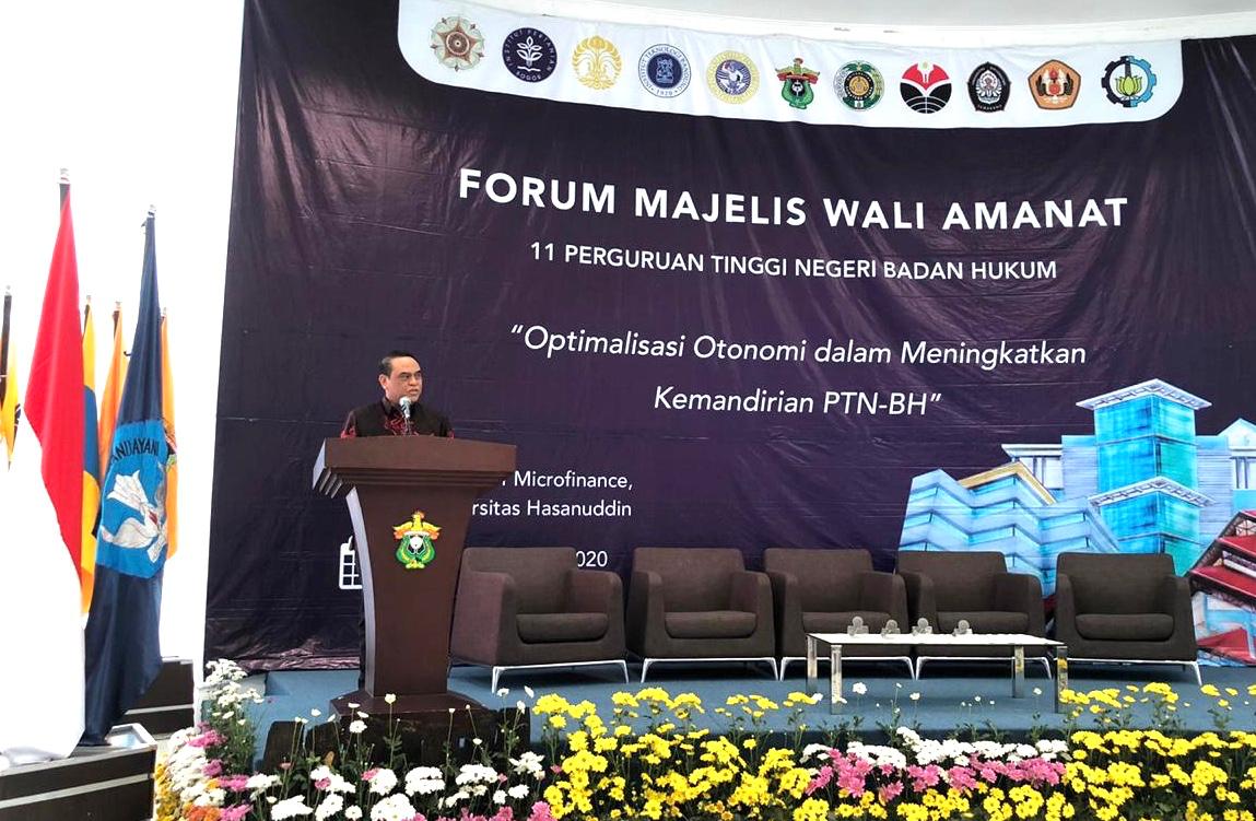 Hasanuddin menjadi tuan rumah dalam acara Forum Majelis Wali Amanat 11 Perguruan Tinggi Negeri Badan Hukum (PTN-BH) yang diselenggarakan di Center of Microfinance, Universitas Hasanuddin, Rabu-Kamis (12-13/02).