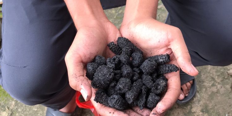 Mahasiswa Kuliah Kerja Nyata (KKN) 107 Unhas Takalar 1 Desa Patani, Kecamatan Mappakasunggu, Kabupaten Takalar kenalkan biochar dari bonggol jagung kepada kelompok petani di Desa Patani, Jum’at (28/1).
