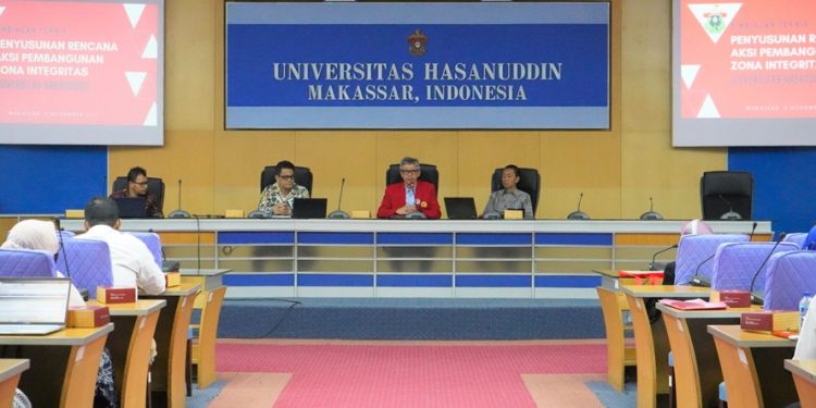 Universitas Hasanuddin menyelenggarakan bimbingan teknis penyusunan rencana pembangunan zona integritas, sebagai bentuk komitmen untuk menghadirkan sistem birokrasi yang bebas korupsi. Kegiatan ini berlangsung di Ruang Senat, Gedung Rektorat Unhas, Rabu (9/11).