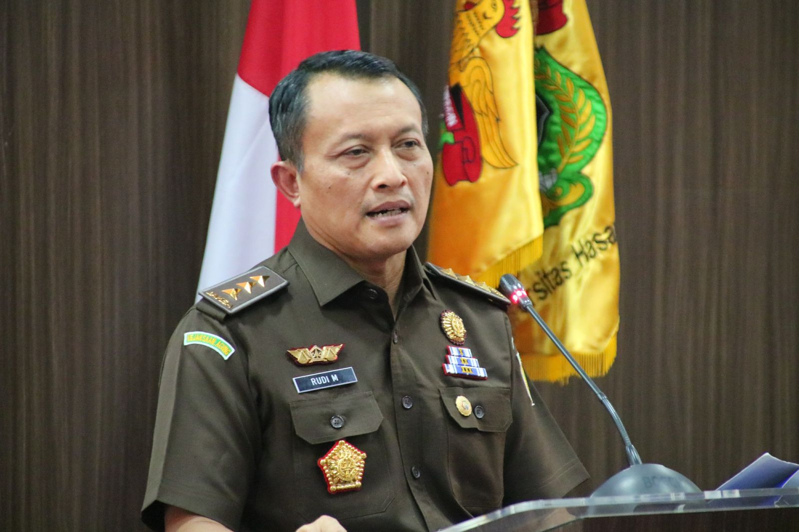 Jaksa Agung Muda Bidang Pengawasan (JAMWAS)/Penasihat Persatuan Jaksa Indonesia (PERSAJA), Dr Rudi Margono SH M HM hadir pada kuliah umum dengan tema “Pengawasan Sebagai Alat Untuk Meningkatkan Kualitas Penanganan Perkara”, Rabu (21/05).