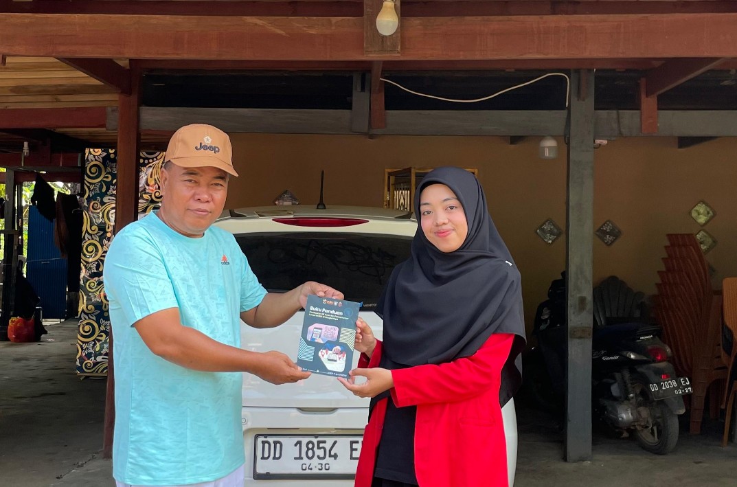 Mahasiswa Kuliah Kerja Nyata Tematik (KKN-T) Gelombang 114 Universitas Hasanuddin (Unhas) menyerahkan poster QR Code dan Buku Panduan Digitalisasi UMKM kepada Kepala Desa Padang Lampe, Kecamatan Ma’rang, Kabupaten Pangkajene dan Kepulauan, Sabtu (16/08).