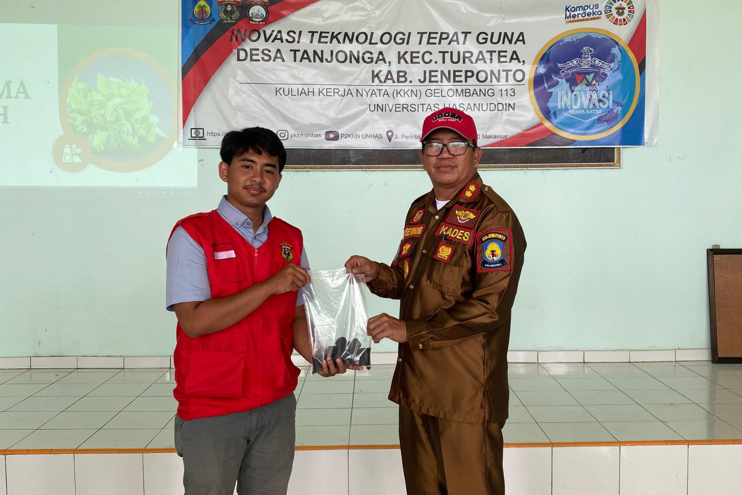 Mahasiswa KKN Universitas Hasanuddin (Unhas) Gelombang 113 Desa Tanjonga, Kecamatan Turatea Kabupaten Jeneponto mengadakan sosialisasi pembuatan briket dari tongkol jagung, Senin (03/02). Kegiatan yang berlangsung di kantor Desa Tanjonga ini merupakan hasil dari observasi mahasiswa KKN Unhas.