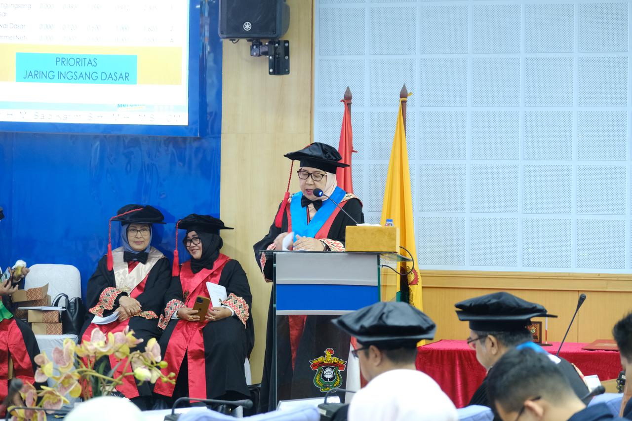 Prof Sri menyampaikan pidato pengukuhan berjudul “Model Rekonstruksi Aktivitas Ekonomi Masyarakat Pesisir Perspektif Kebijakan Alat Tangkap Ramah Lingkungan”. Dalam orasinya, ia menyoroti dampak kebijakan larangan penggunaan alat tangkap ikan jenis jaring tarik. Hal ini seperti trol dan cantrang, yang dinilai merusak lingkungan laut dan mengancam keberlanjutan sumber daya ikan.