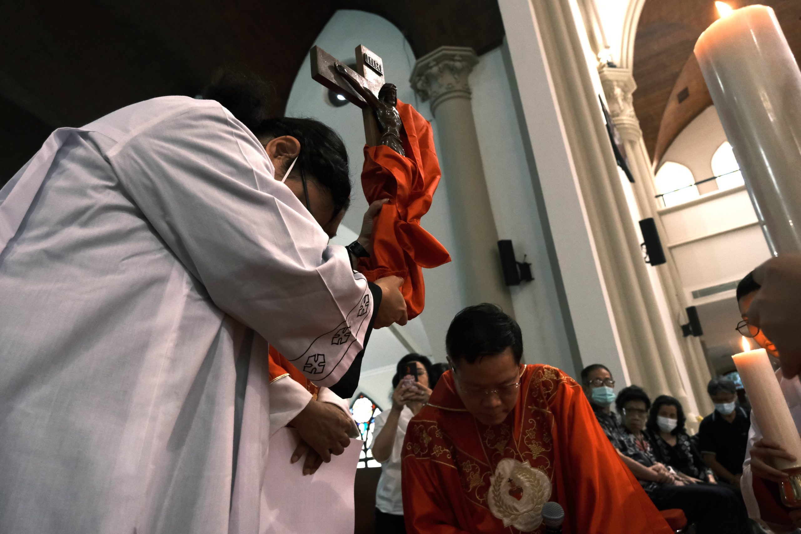 Rangkaian Jumat Agung pun berakhir saat Uskup dan Pastor melangkah perlahan menjauh dari altar, melewati karpet merah, meninggalkan ruang yang masih sarat makna dan sunyi. Pun hingga rangkaian ibadah selesai, langit menolak menahan rintiknya.