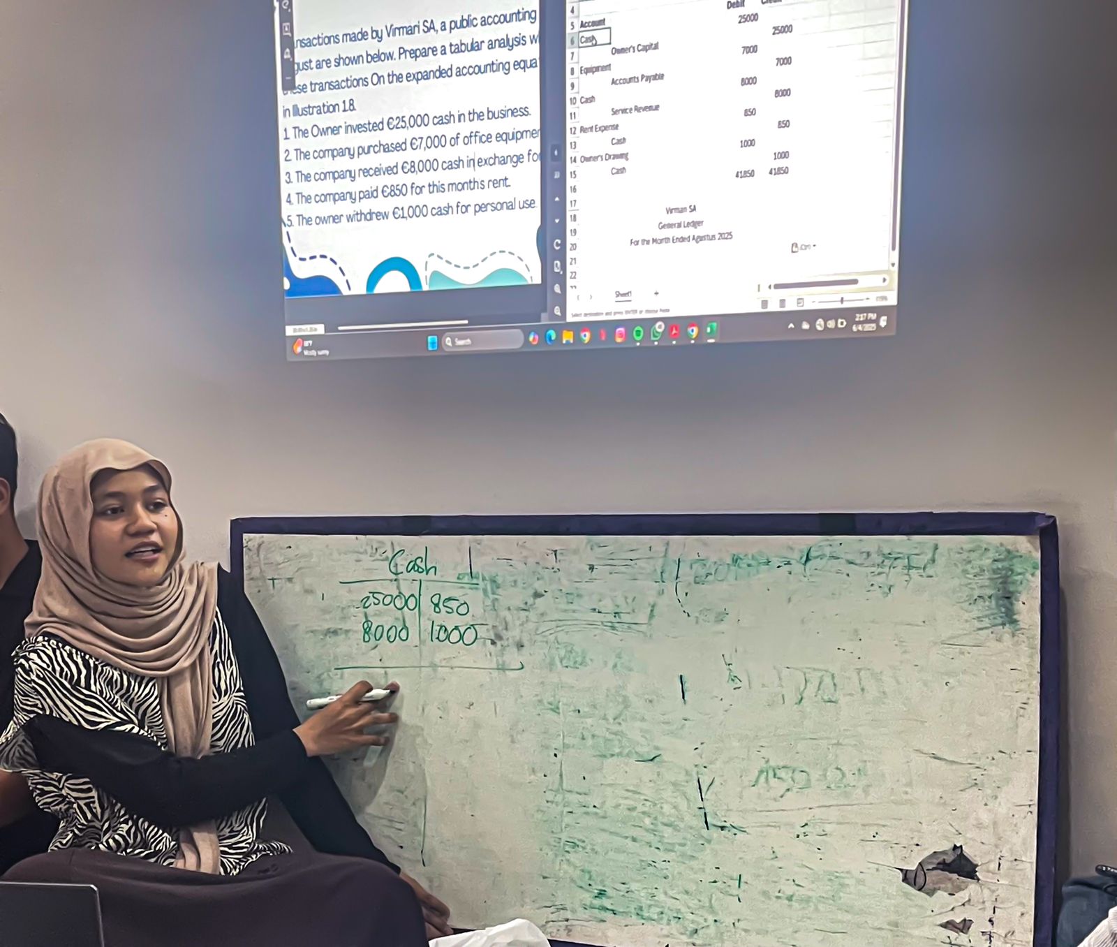 Riska turut menjelaskan siklus akuntansi sebagai proses mengubah data keuangan menjadi informasi yang berguna, dengan menegaskan akuntansi tidak hanya mencatat angka, tetapi juga memahami operasi bisnis dan mendukung pengambilan keputusan strategis.