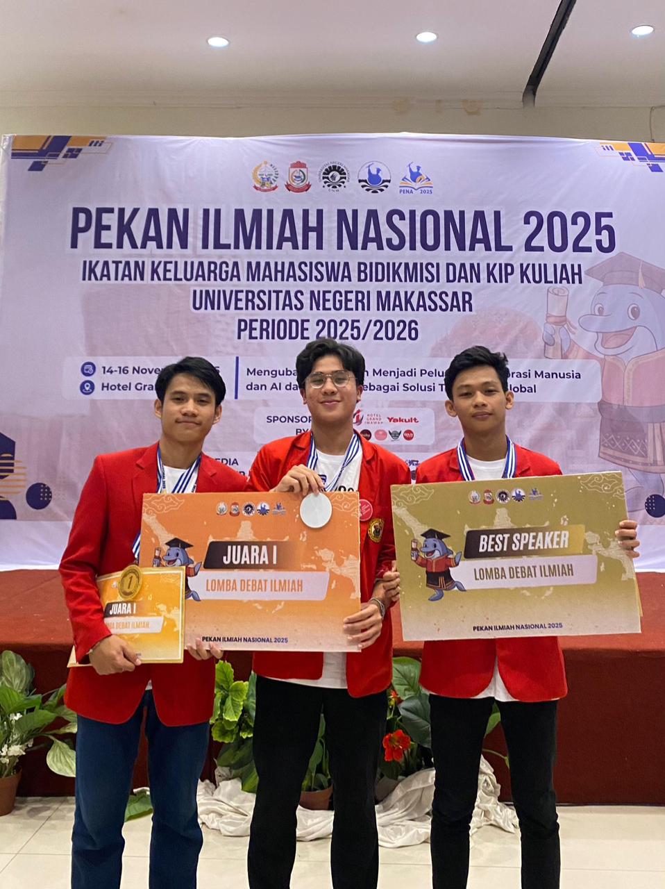 Tim debat Hasanuddin English Debate Society (HEDS) Universitas Hasanuddin (Unhas) raih Juara 1 Lomba Debat Ilmiah dalam Pekan Ilmiah Nasional 2025. Kegiatan yang diselenggarakan Ikatan Keluarga Mahasiswa Bidikmisi (IKBIM) KIP Kuliah Universitas Negeri Makassar (UNM), berlangsung di Hotel Grand Imawan, Makassar, Jumat-Minggu (14-16/11).