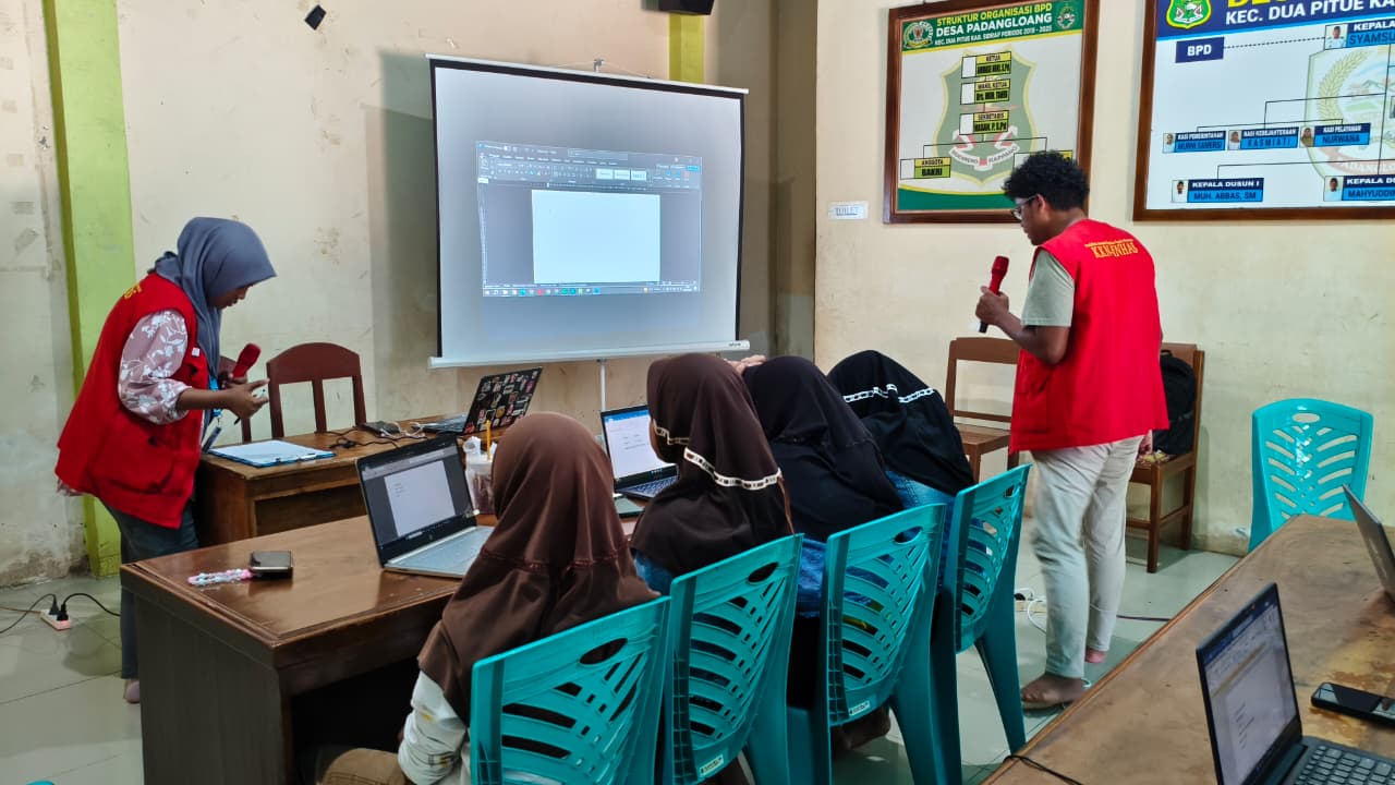 Berupaya meningkatkan kepekaan digital, mahasiswa Kuliah Kerja Nyata Tematik (KKN-T) Universitas Hasanuddin (Unhas) Gelombang 114 melaksanakan program kerja “Pelatihan Dasar Komputer” untuk siswa SMP dan SMA di Kantor Desa Padangloang, Kecamatan Dua Pitue, Kabupaten Sidenreng Rappang, Sabtu (02/08).