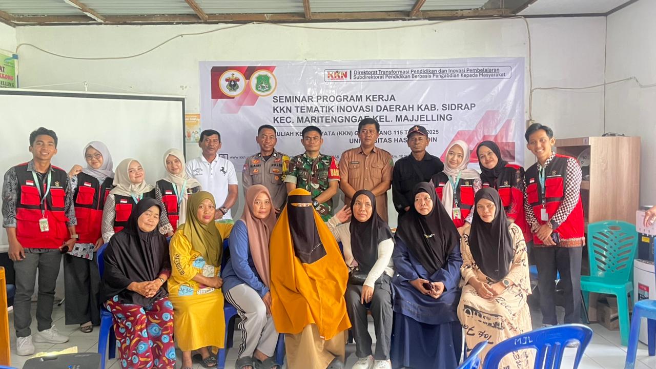 Mahasiswa Kuliah Kerja Nyata Tematik (KKN-T) Gelombang 115 Universitas Hasanuddin (Unhas) Posko Kelurahan Majjelling menggelar seminar program kerja bertajuk inovasi pertanian serta Keselamatan dan Kesehatan Kerja (K3). Kegiatan ini berlangsung di Kantor Lurah Kelurahan Majjelling, Kecamatan Maritengngae, Kabupaten Sidenreng Rappang (Sidrap), Senin (05/01).