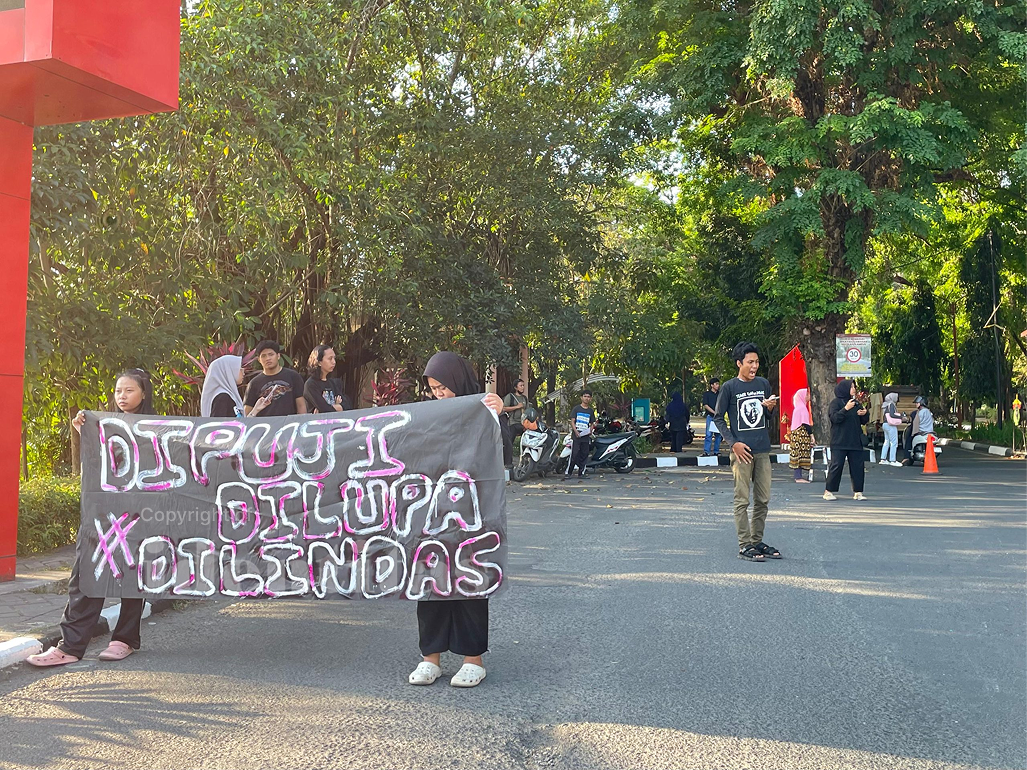 Unit Kegiatan Mahasiswa (UKM) Teater Kampus Universitas Hasanuddin (Unhas) adakan teatrikal jalanan bertajuk “Dijanji, Dilupa, Dilindas” di Pintu 1 Unhas, Jumat (05/09). Hal ini menjadi pernyataan sikap atas kondisi bangsa yang dipenuhi janji politik yang diingkari, represif aparat, serta lambannya respons pemerintah.