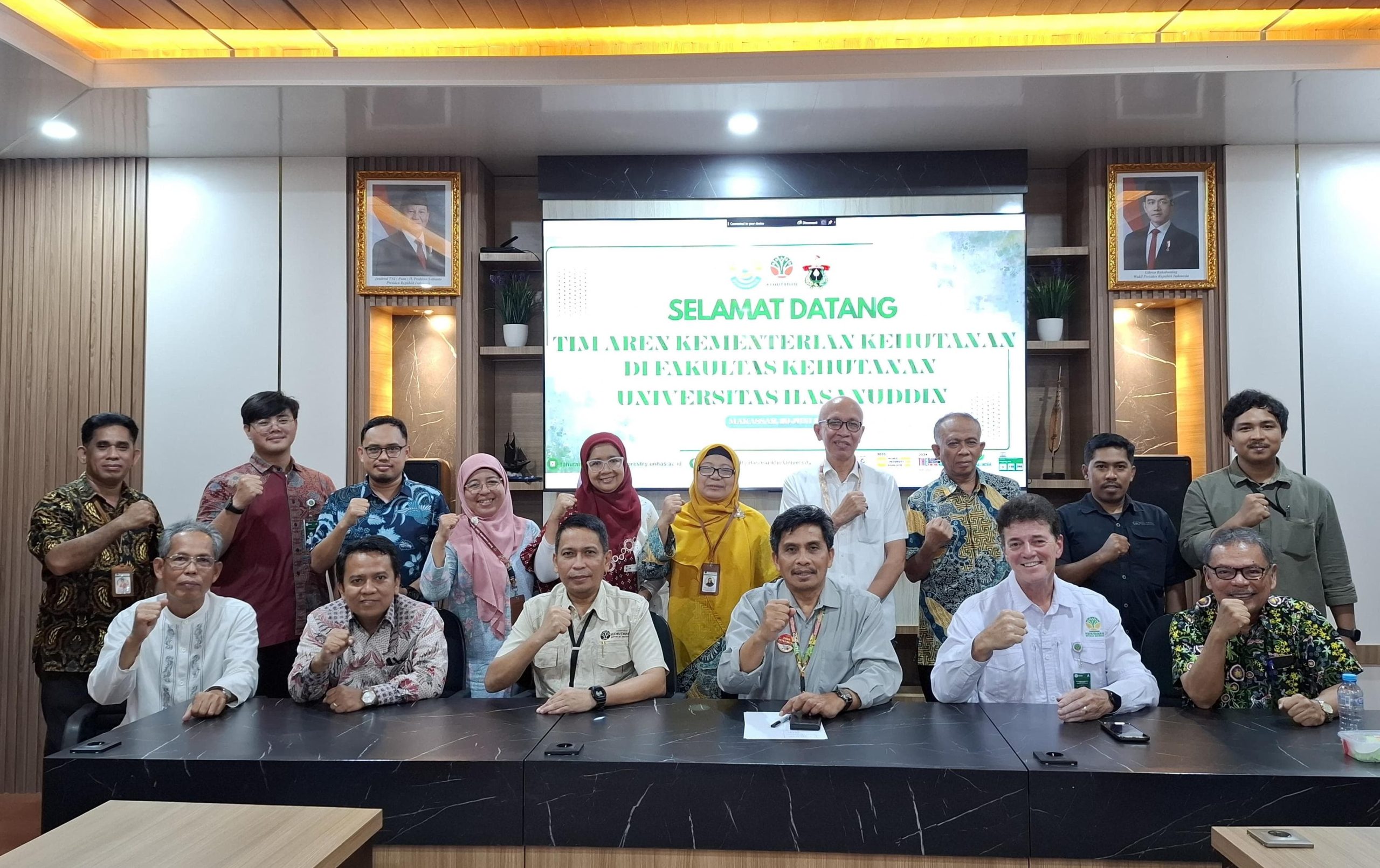 Dekan Fakultas Kehutanan (FHUT) Universitas Hasanuddin (Unhas), Prof Dr Ir A Mujetahid M SHut MP menerima kunjungan Penasehat Utama Menteri Kehutanan (Menhut), Willie Smits dan tim aren di Ruang Senat FHUT, Jumat (20/06).