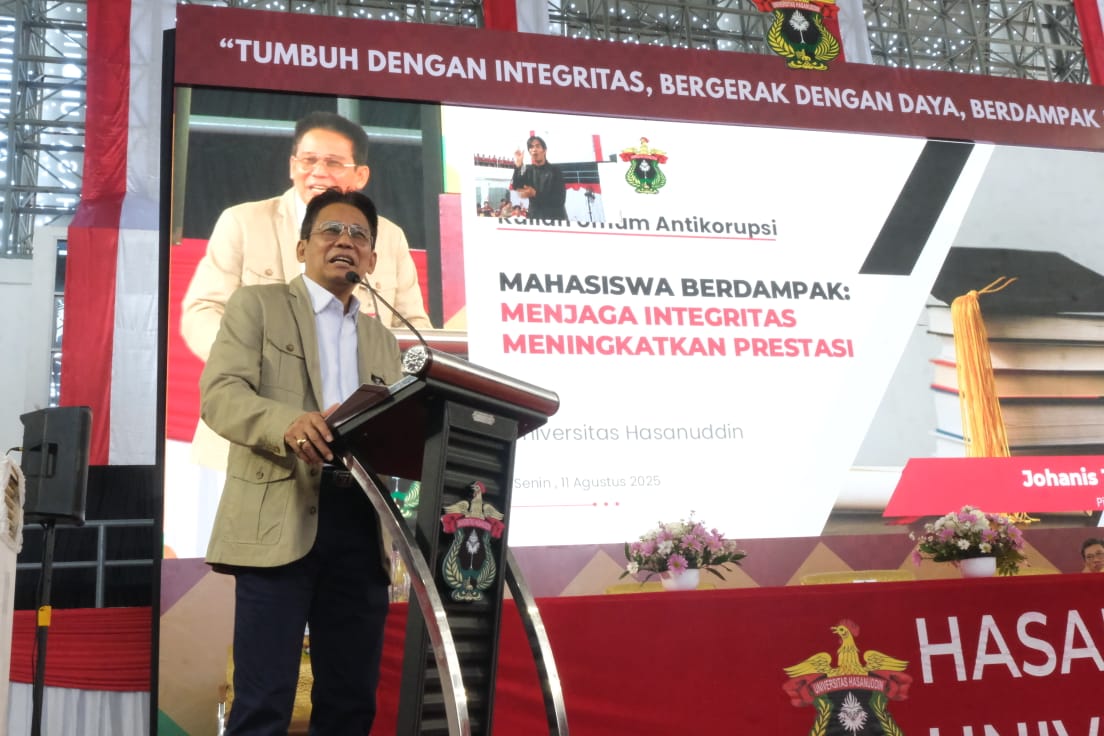 Wakil Ketua Komisi Pemberantasan Korupsi (KPK) Republik Indonesia (RI), Dr Johanis Tanak SH MH, membawakan kuliah umum bertema “Menjaga Integritas, Meningkatkan Prestasi”. Hal tersebut ia sampaikan pada Pengenalan Kehidupan Kampus bagi Mahasiswa Baru (PKKMB) Universitas Hasanuddin (Unhas) di JK Arenatorium (GOR Unhas), Senin (11/08).