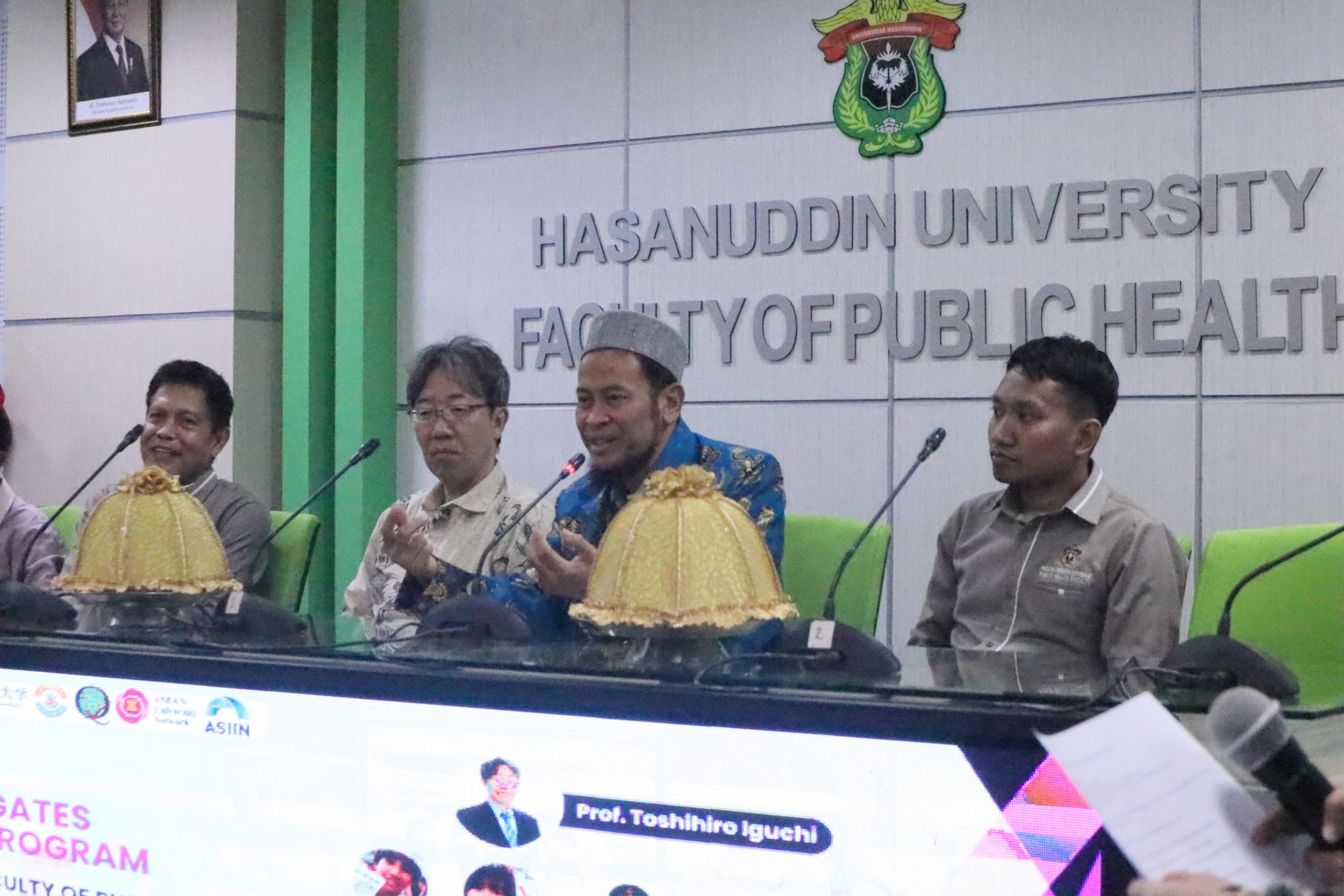 Wakil Dekan Bidang Kemitraan, Riset, Inovasi dan Alumni, Prof Anwar Mallongi SKM MSc PhD, hadir memberi sambutan. Pada kesempatannya, ia berterima kasih kepada para delegasi Okayama University yang telah menyempatkan waktunya untuk berkunjung ke FKM Unhas.